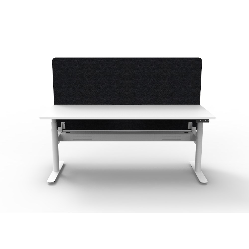 Rapidline Halo+ Single Sided Workstation + Black Eco Screen +Tray 1200Wx620-1270mmH Wht/Wh