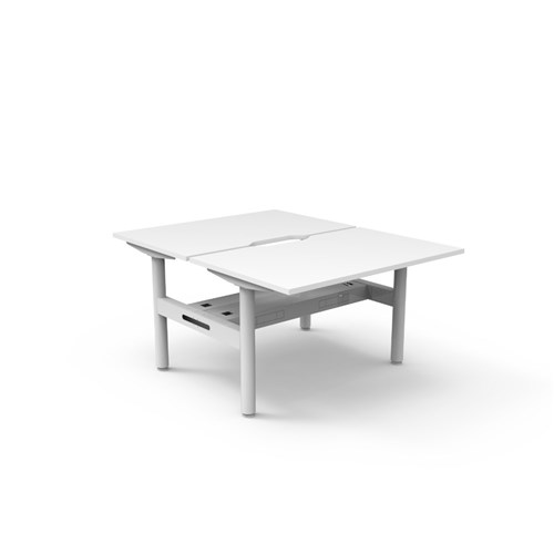 • Natural White top White Satin frame. Double sided workstation with cable tray.