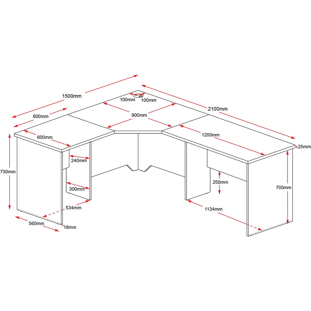 • 3 piece corner workstation.