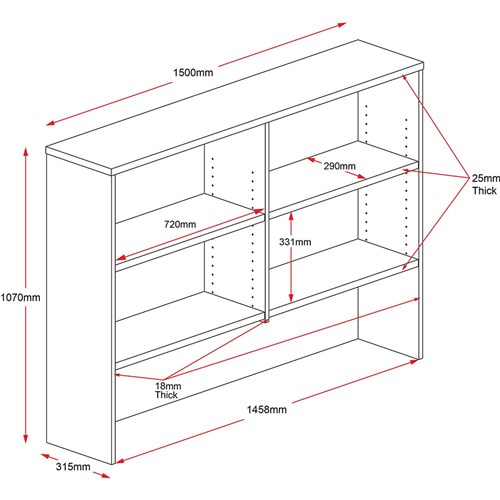 • The hutch comes with adjustable shelves and a space for a monitor under the shelves to maximise desk space, and clear clutter from the desk top.