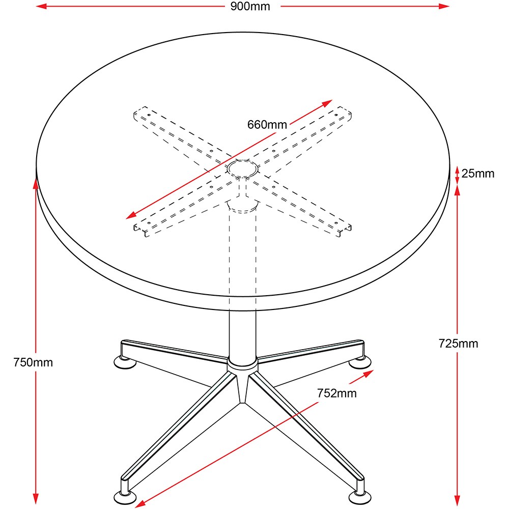 Rapidline Typhoon Round Table 900D x 730mmH Natural Oak Top Black Base
