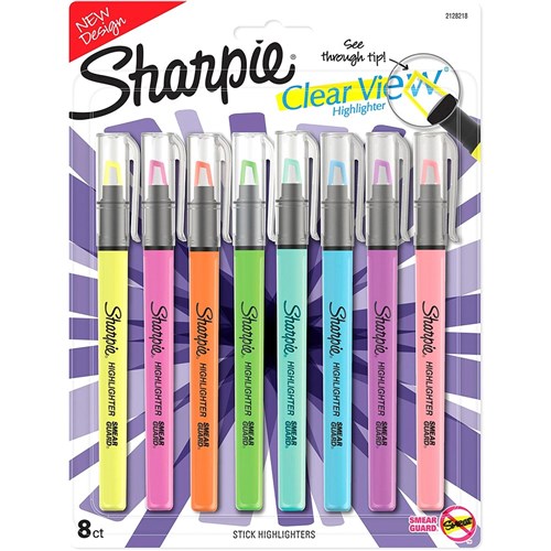 Sharpie Clear View Stick Highlighter Marker See Through Chisel Tip Assorted Pack of 8