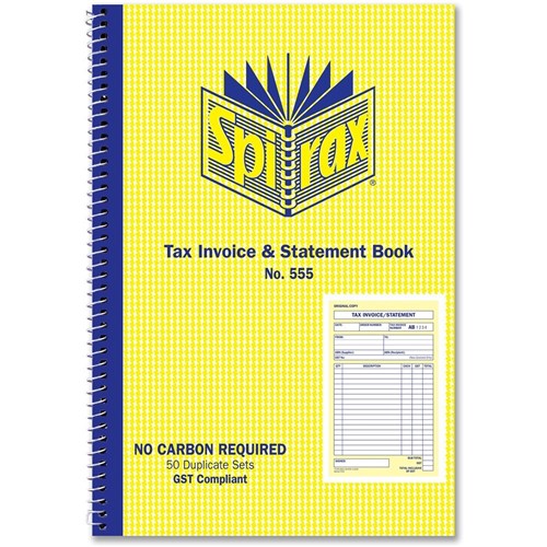 Spirax 555 Tax Invoice & Statement Book Carbonless 50 Duplicate Sets Side Opening