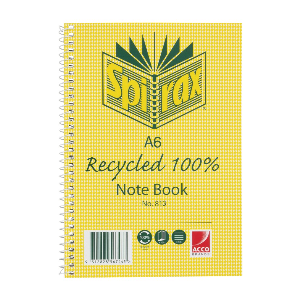 Spirax 813 Notebook A6 Ruled 100 Page 100% Recycled Side Bound