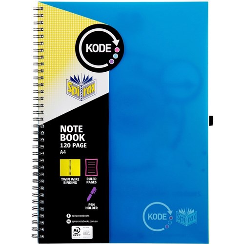 • l Spirax Kode note books are equipped with durable protective covers and twin wire binding to keep your notes safe from wear and tear.
