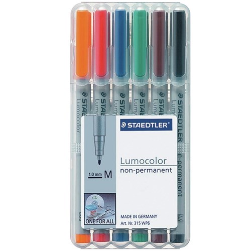 STAEDTLER 315 LUMOCOLOR PENS Non-Perm Med 1.0mm Wlt6