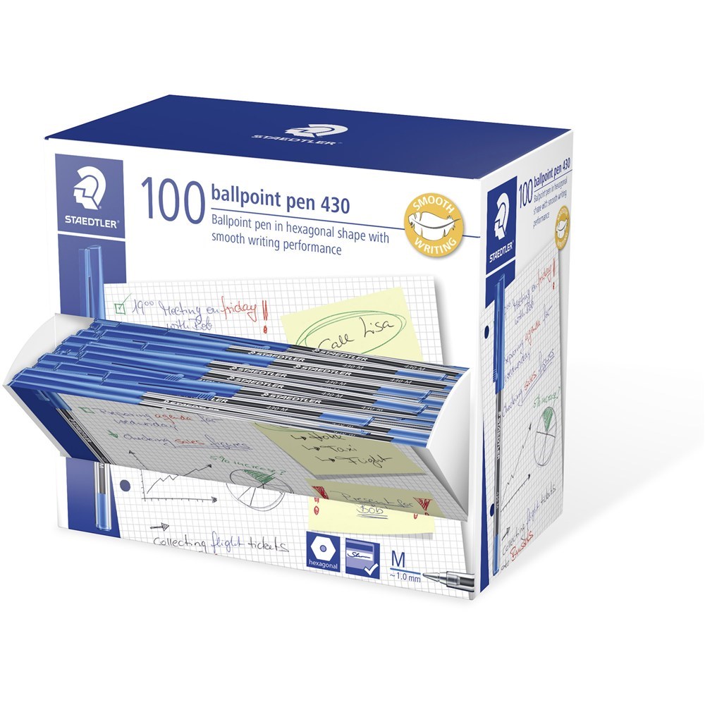 Staedtler 430 Stick Ballpoint Pens Medium 1mm Blue Pack of 100
