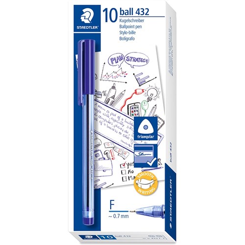 Staedtler 432 Stick Triangular Ballpoint Pen Fine 0.7mm Blue Box of 10