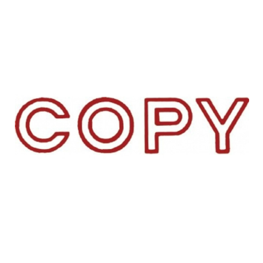 • "Contains 1 pre-inked stamp ""COPY"" outline text"