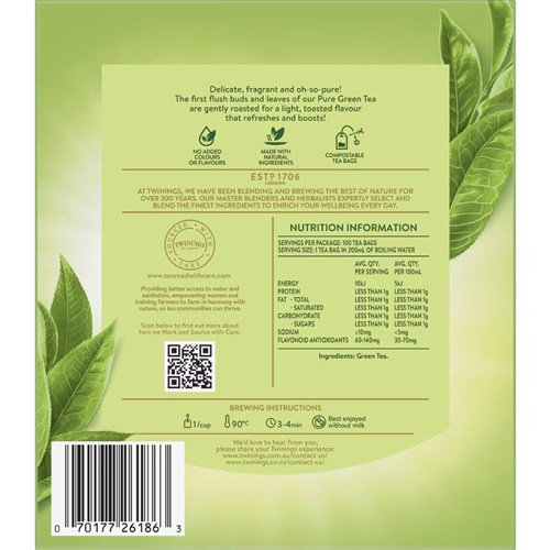 Twinings Pure Green Tea Bags Box Of 100 Carton of 6