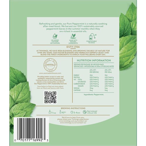 Twinings Pure Peppermint Tea Bags Box Of 80 Carton of 6