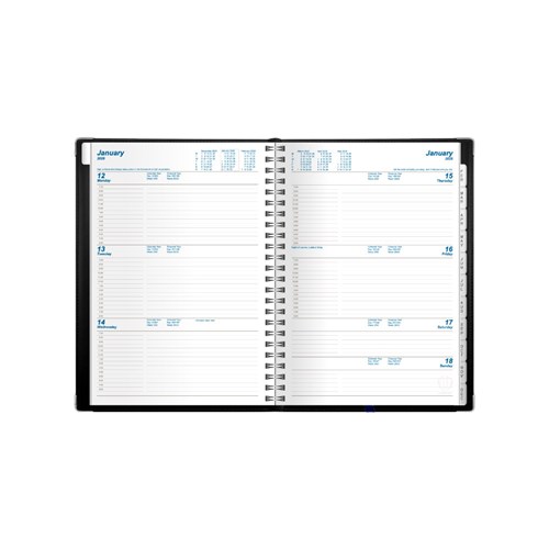 • Double wire binding. Lay flat opening. Ribbon marker. Tabs. Translucent pocket.