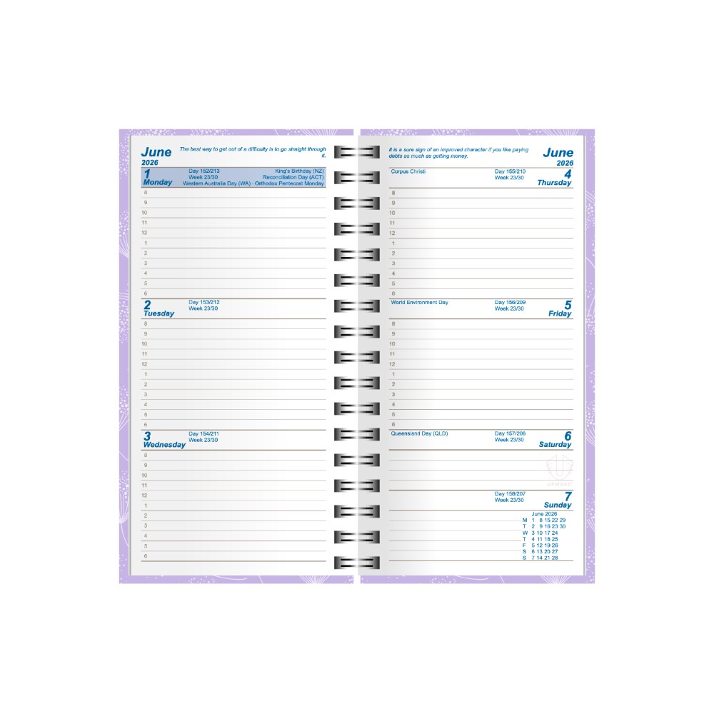 Upward Fashion Diary A6/7 Week To View Lavender