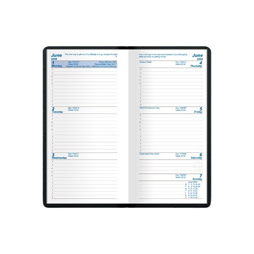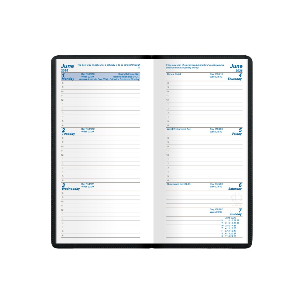 Upward Standard Pocket 148 x 74mm Week To View Black