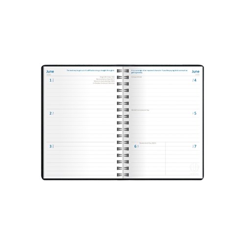 Upward Superior Wire-O Diary B6 Week To View Black