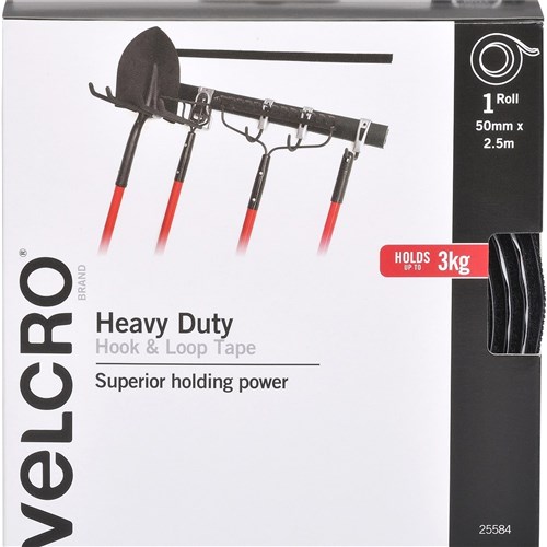 VELCRO 25584 STICK ON Heavy Duty 50mmx2.5m Blk EACH