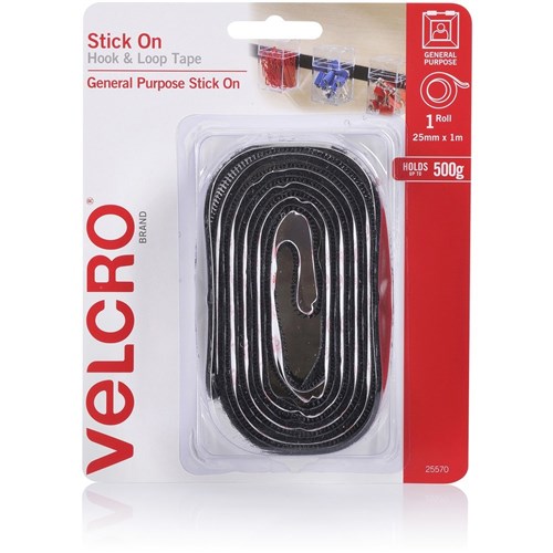 VELCRO® BRAND HOOK & LOOP Tape Stick On 25Mm X 1M Black