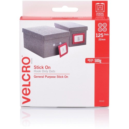 Velcro Brand Stick On Hook Only 22mm 125 Dots White Dispenser
