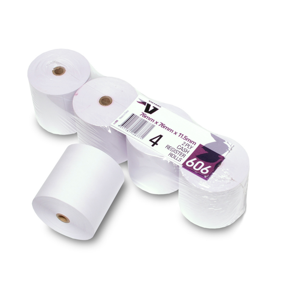 Victory 606 Paper Cash Register Rolls 76 x 76 x 12mm 2 Ply Pack Of 4