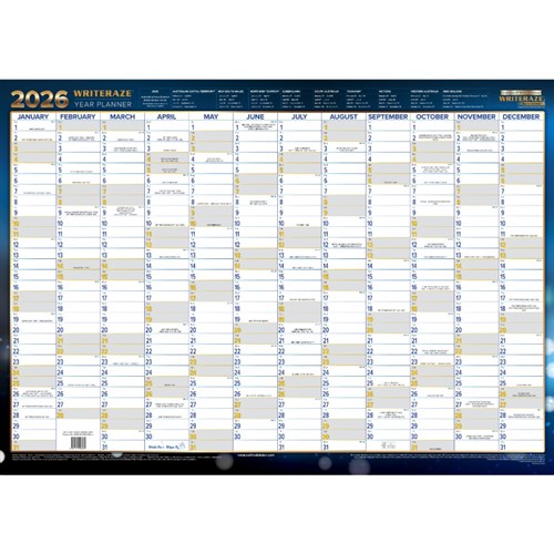 Writeraze Date Wall Planner 500x700mm Unframed Blue