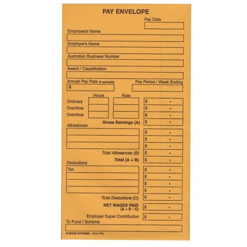 ZIONS PPL ENVELOPES Printed Pay 165X90mm Self Seal